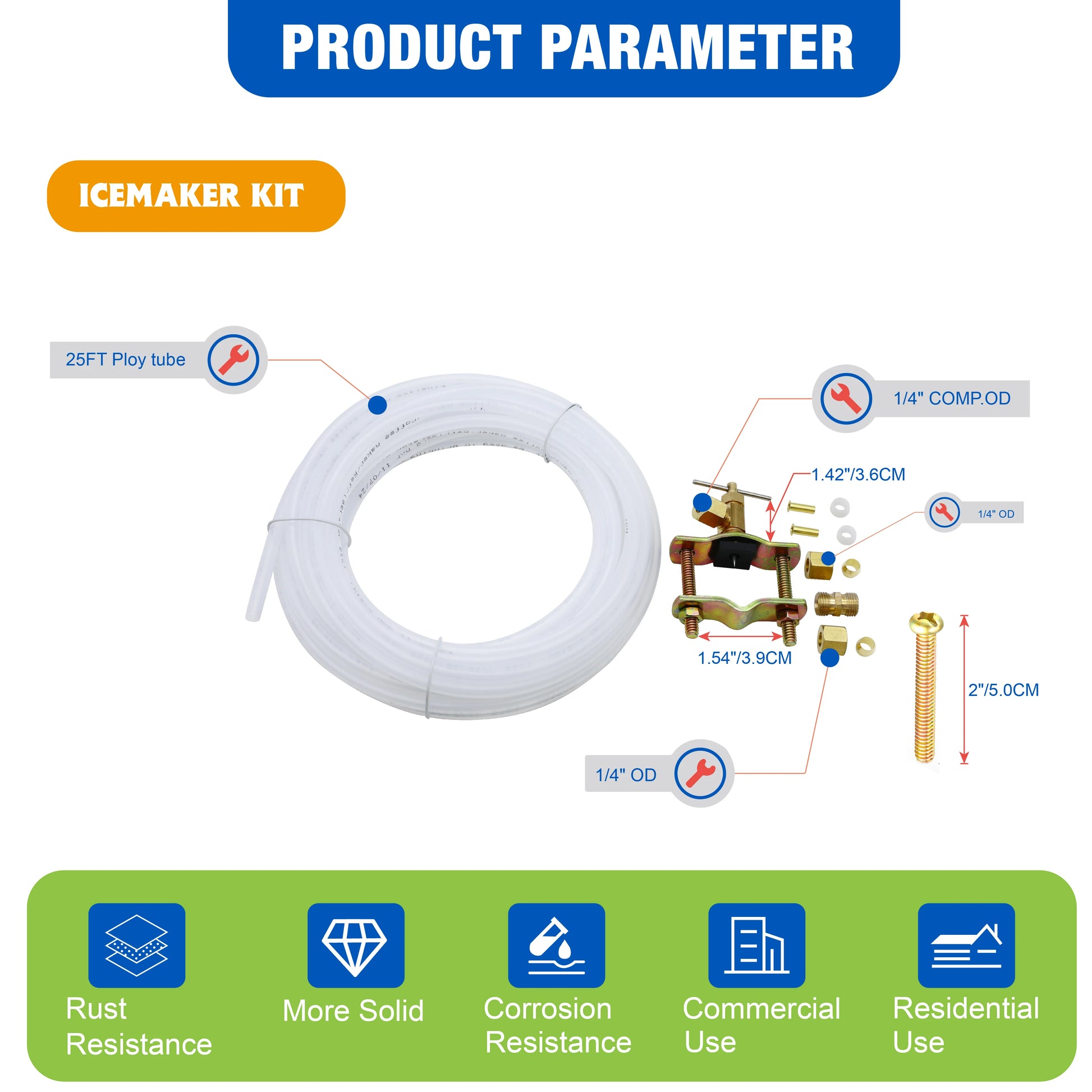 1/4" OD. x 25 ft. Poly Tubing, Self-Piercing Saddle Valve, Compression Fittings and Adapters;