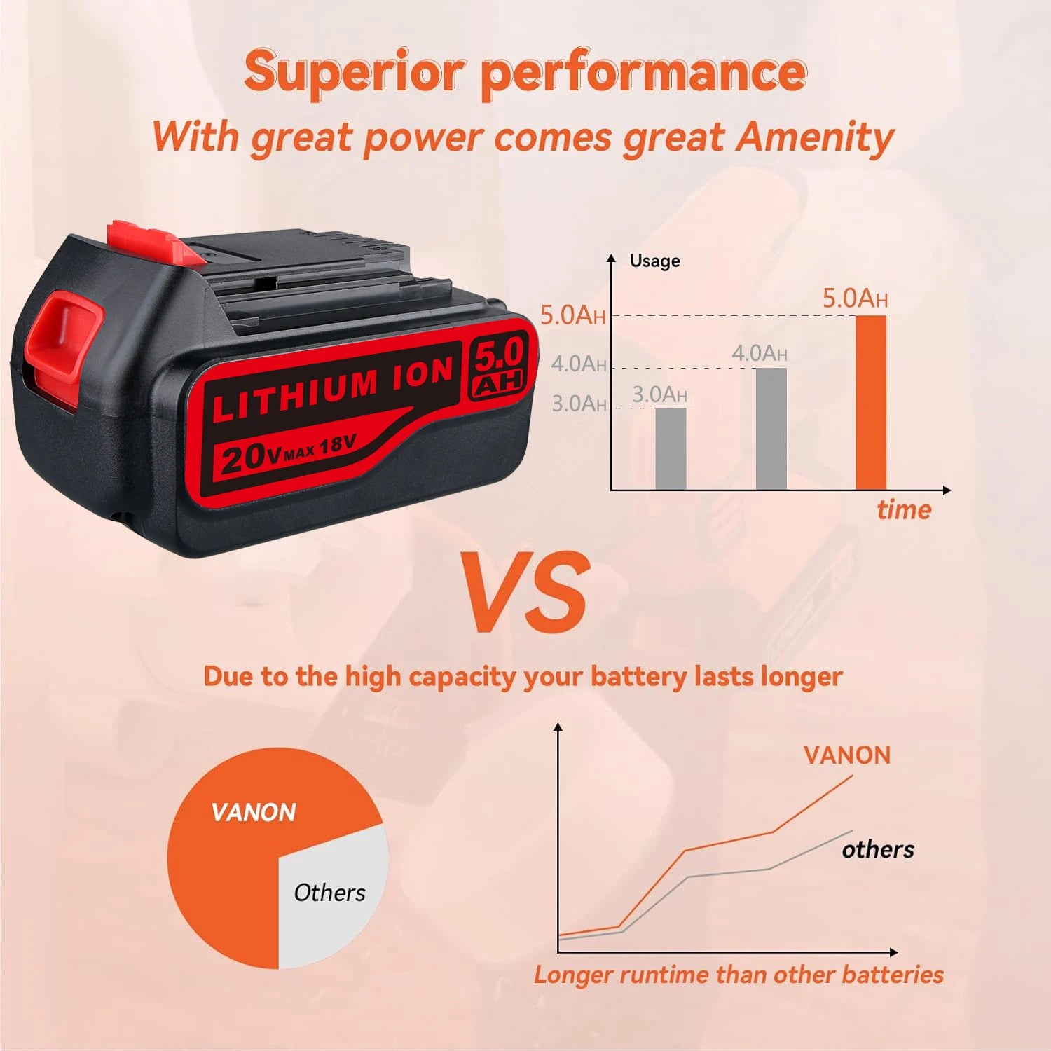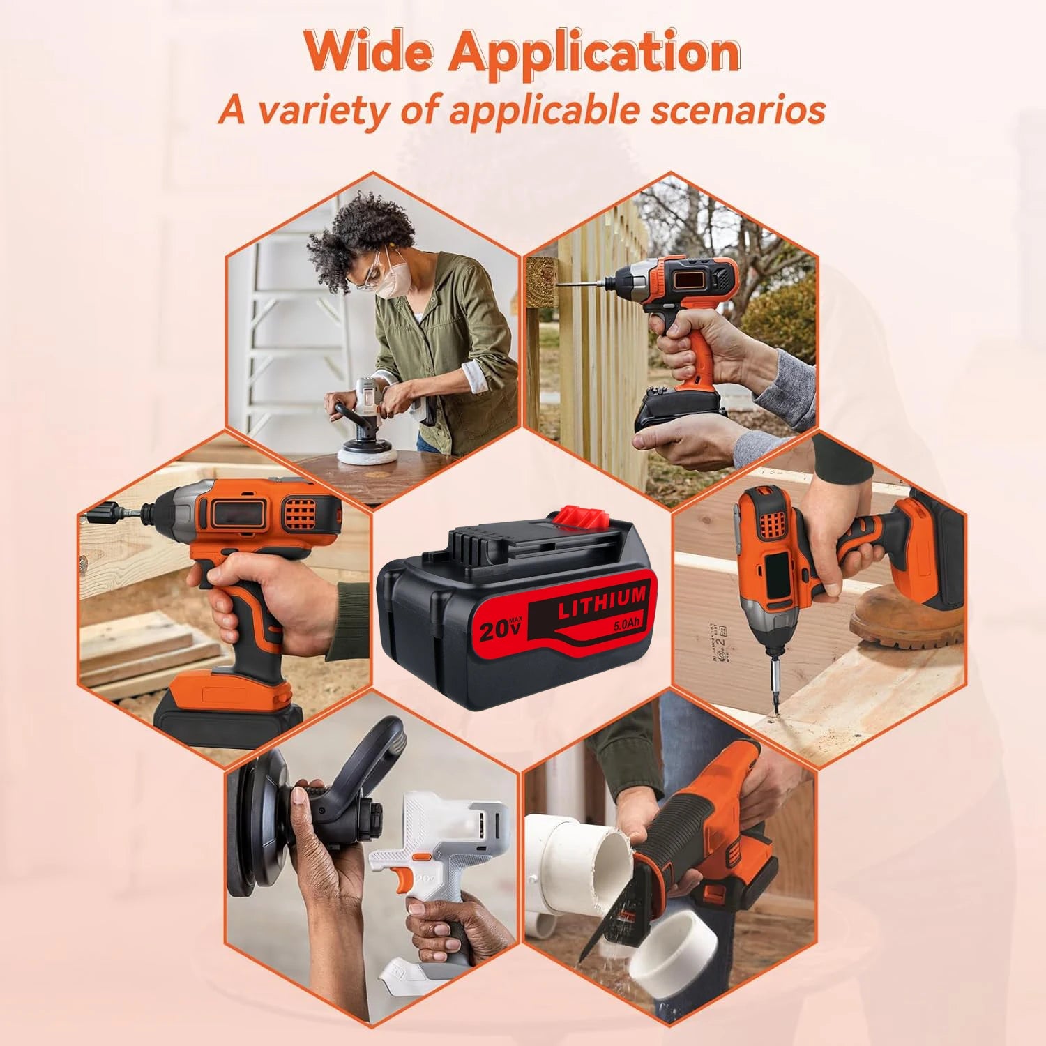 20V 5.0Ah Lithium Max Battery Replace for Black and Decker