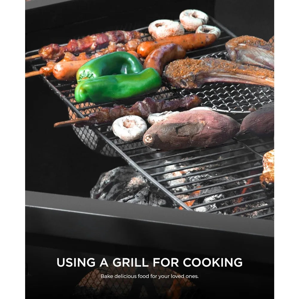 - 【VISUAL APPEAL & HUMANIZED STYLE】We have a cooking grill and a poker in our fire pit. You may cook with a pan on them, keep meals warm, or barbeque. When grilling, the poker is used to modify the wood fuel, which can help maintain a mild and even fire and encourage effective log burning.