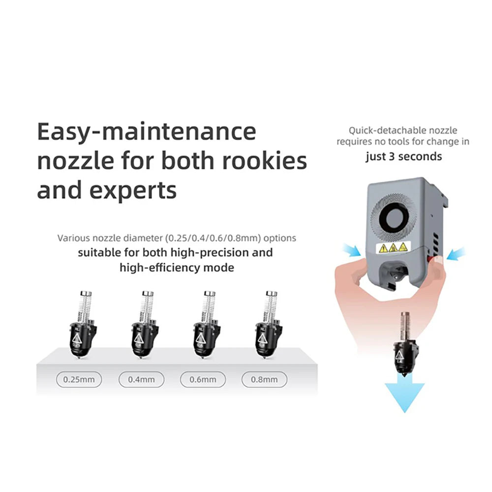 Nozzle Diameter: 0.25mm/0.4mm/0.6mm/0.8mm