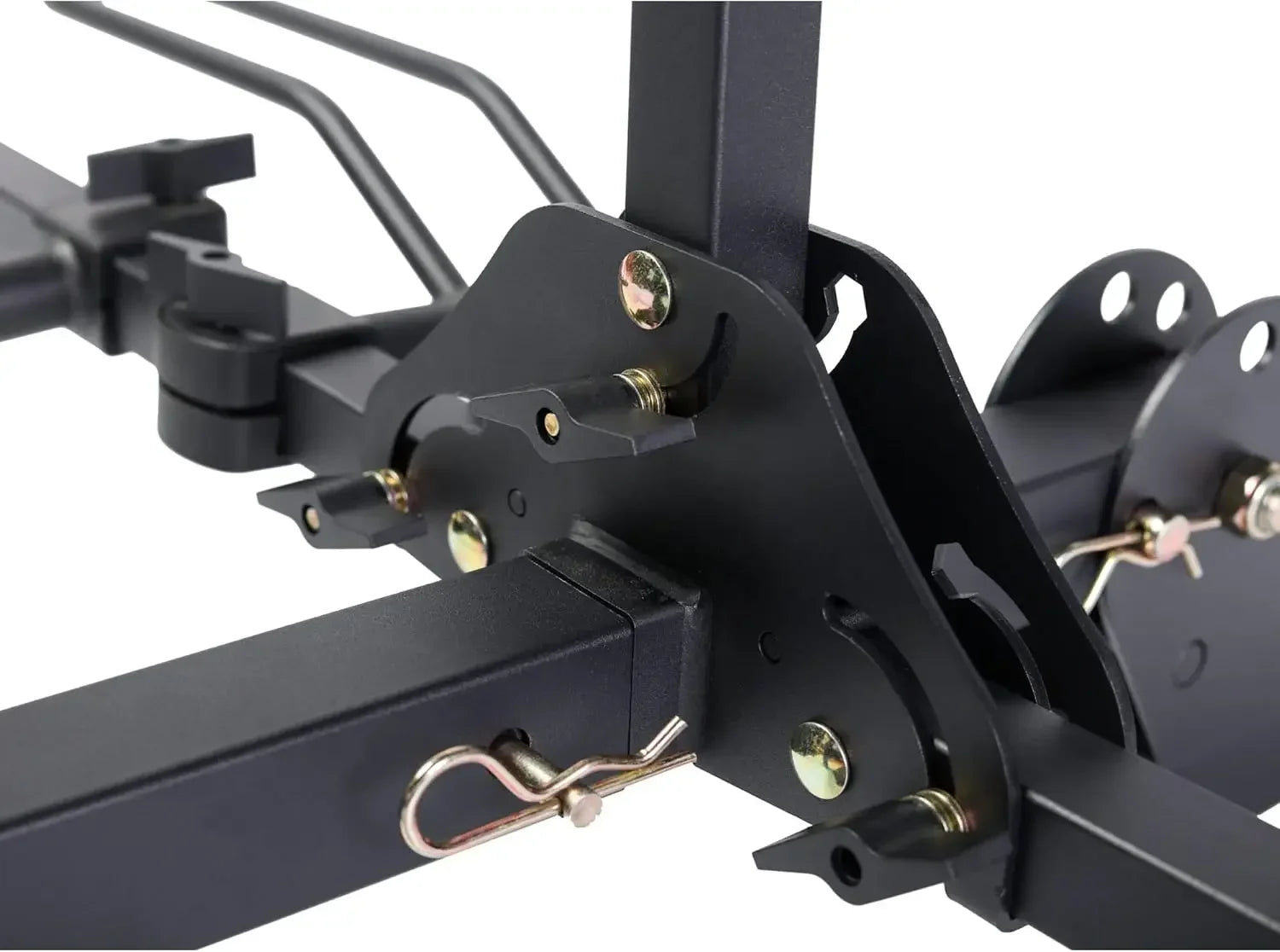 👍🏻FOLDABLE & TILT BACK DESIGN: Users can fold up this rack to save space when not in use, convenient for garage parking. Quick release tilting down feature allows easy access to trunk without detaching the hitch rack.