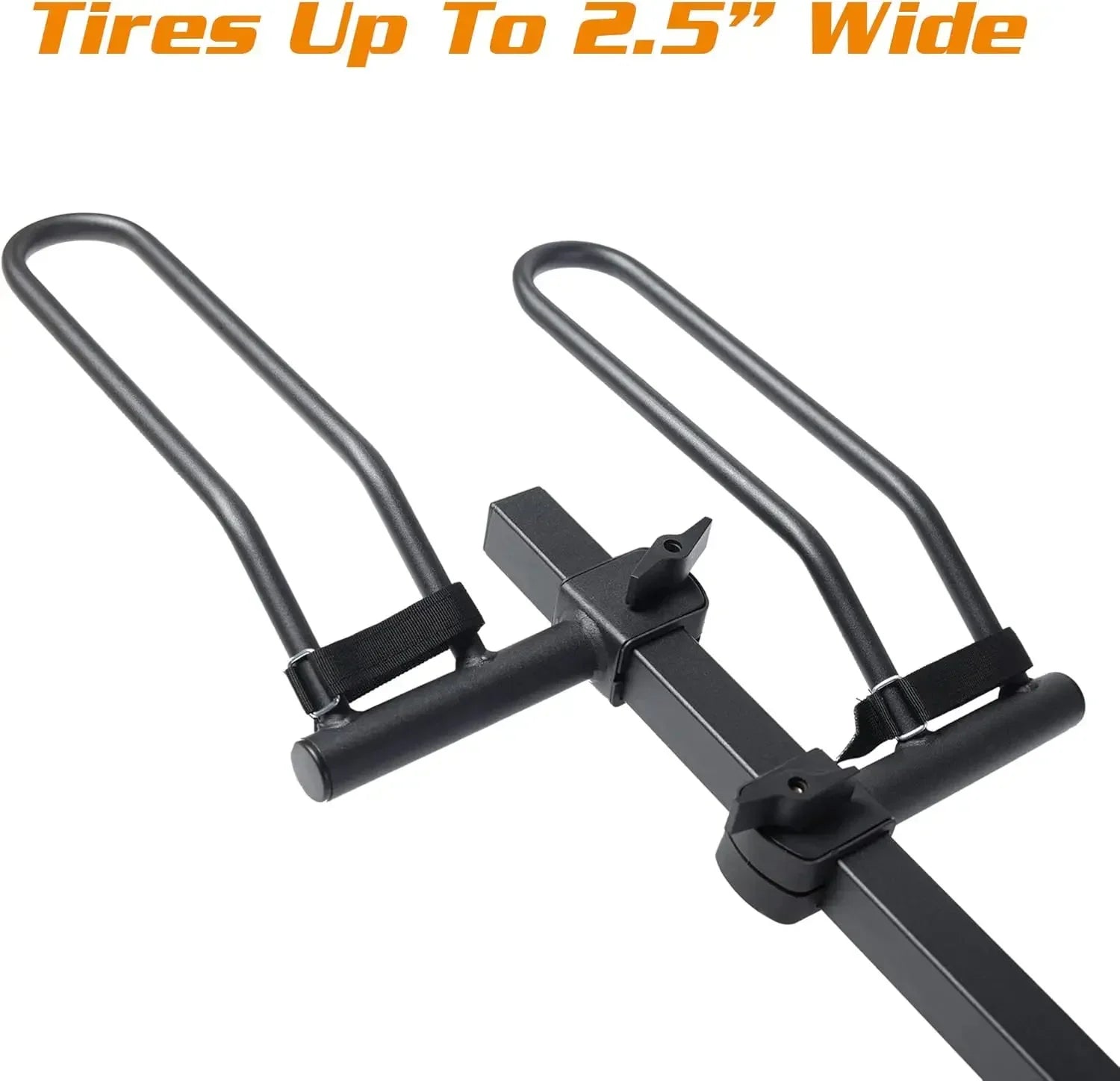 👍🏻SAFE AND SECURE: Comes with soft padded hooks and locking hitch pin, that secure your bikes in place without swaying and scratching the paint. Slide down over the vertical frame with hitch tightener to fit different size bike frame for safe. With rear Safety Reflector to enhance the visibility in the dark.