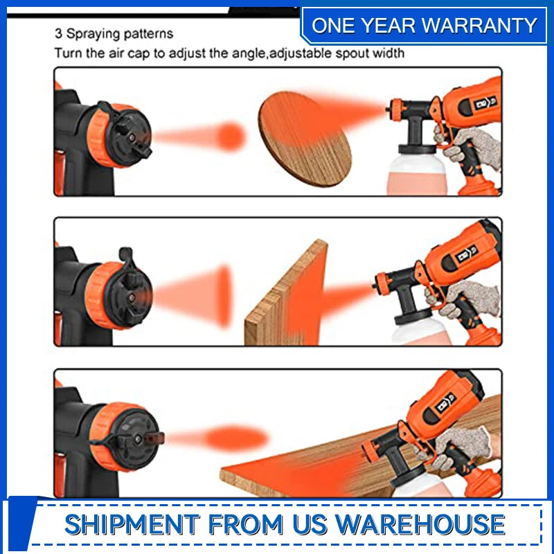 Adjust the Flow Rate: Flow control knob can adjust the flow rate. You can control the flow rate of the spray by turning the knob to get different paint output. It sprays most types of finishes on evenly and without brush marks, suitable for edges, corners and broad interior surfaces of various work and DIY projects