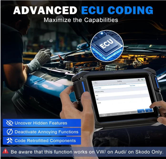 VD70 scan tool does ECU coding capability (for VW/Audi/SKODA ONLY) to flash hidden features, disable annoying features & match replaced components.