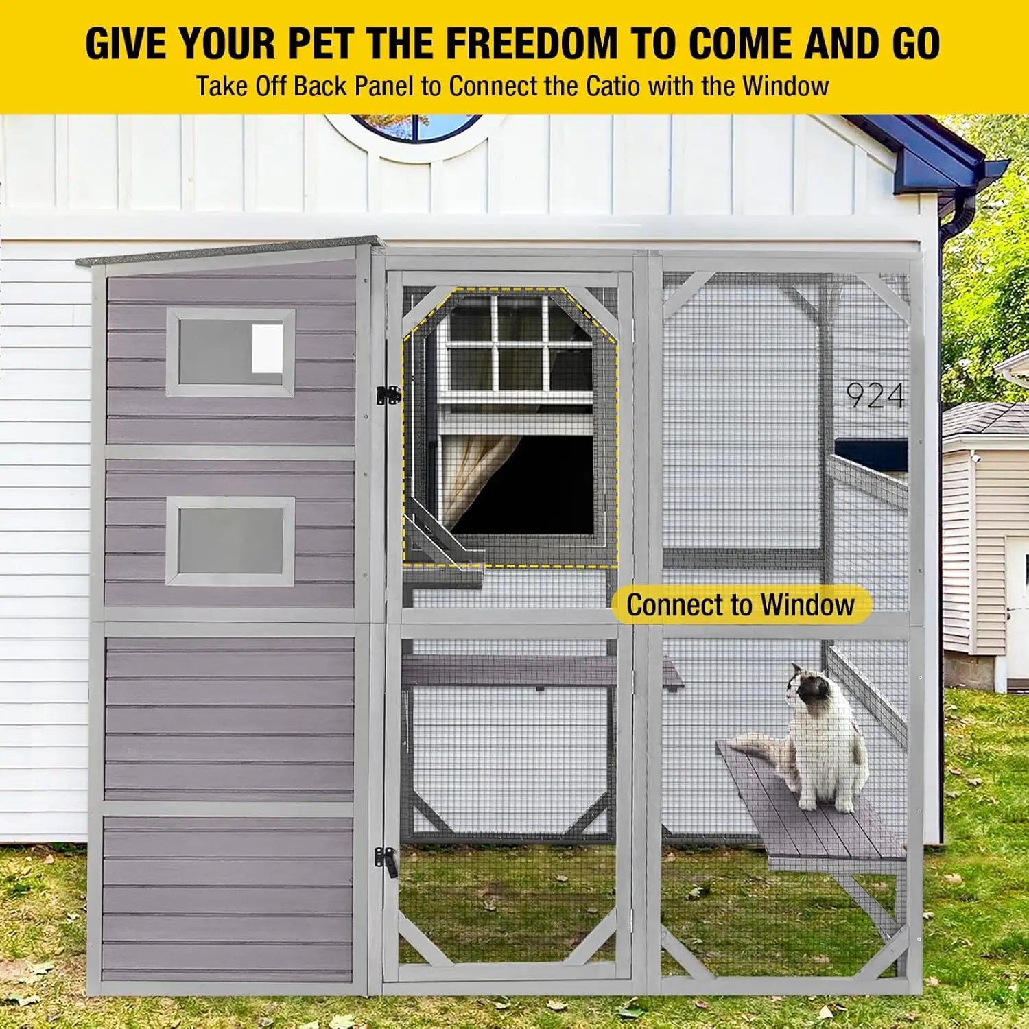 Well-Designed Cat House: Outdoor cat enclosure includes 4 tier loft, 3 resting rooms, 5 windows (4 acrylic windows, 1 sliding window), 3 platforms. Spacious living area is the perfect solution to keep your cats, raccoons, squirrels, lizards, birds, pigeons safe and enjoy nature within a catio space.