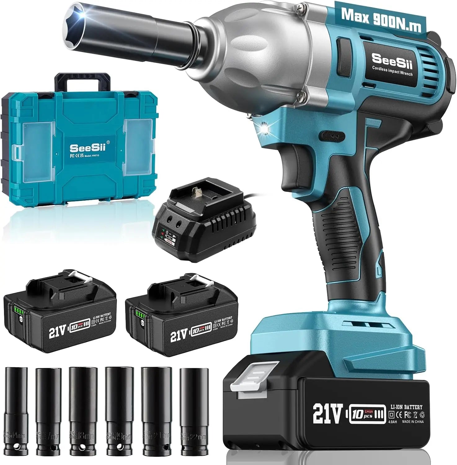 Cordless Electric Impact Wrench 1/2 inch, 665Ft-lbs(900N.m)