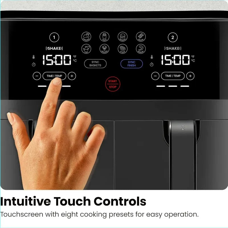 Dual Air Fryer, Maximize The Healthiest Meals With Double Basket Capacity, One-Touch Digital Controls And Shake Reminder For The Perfect Crispy And Low-Calorie Finish