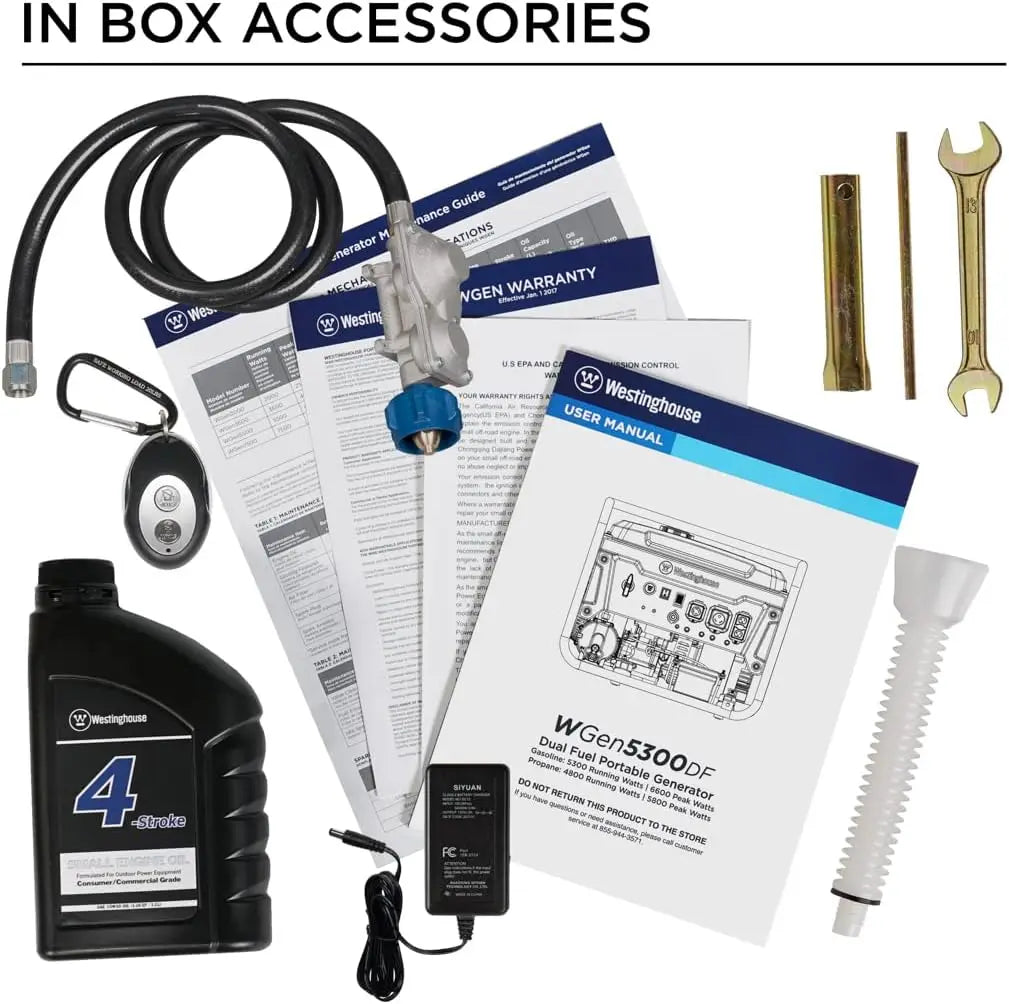 WGen5300DF Dual Fuel Home Backup Portable Generator, 6600 Watts, Remote Electric Start with Auto Choke, Transfer Switch Ready, RV Ready