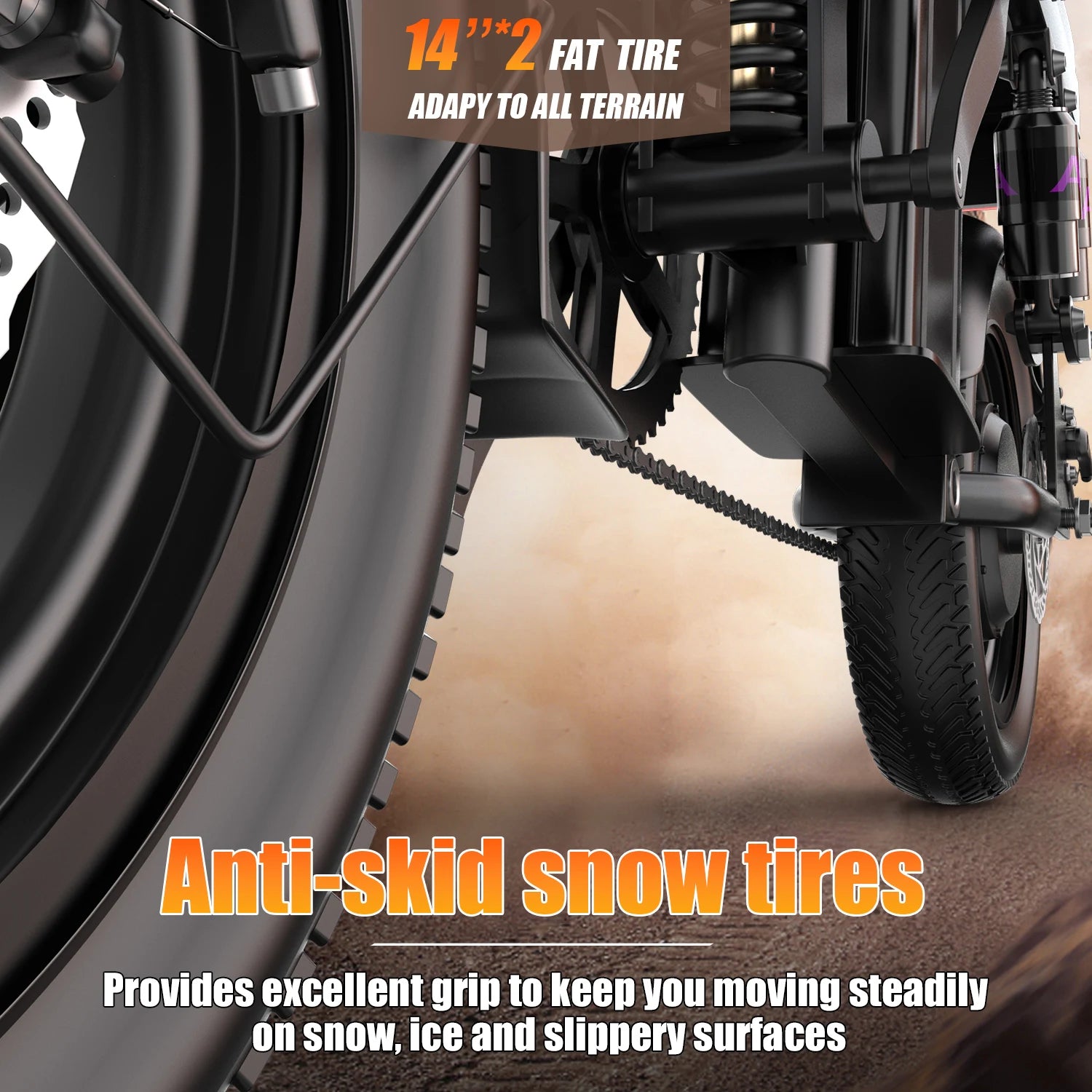 [𝙎𝙢𝙤𝙤𝙩𝙝 𝘾𝙤𝙢𝙛𝙤𝙧𝙩 & 𝙇𝘾𝘿 𝘿𝙞𝙨𝙥𝙡𝙖𝙮] The adjustable seat and handlebar height, and 14-inch pneumatic tires ensure a comfortable riding experience.The lcd display shows battery level, speed, mode and mileage clearly in sunlight, bright led front and rear lights can help you light the way ahead in the dark.Provide a safe and convenient riding experience