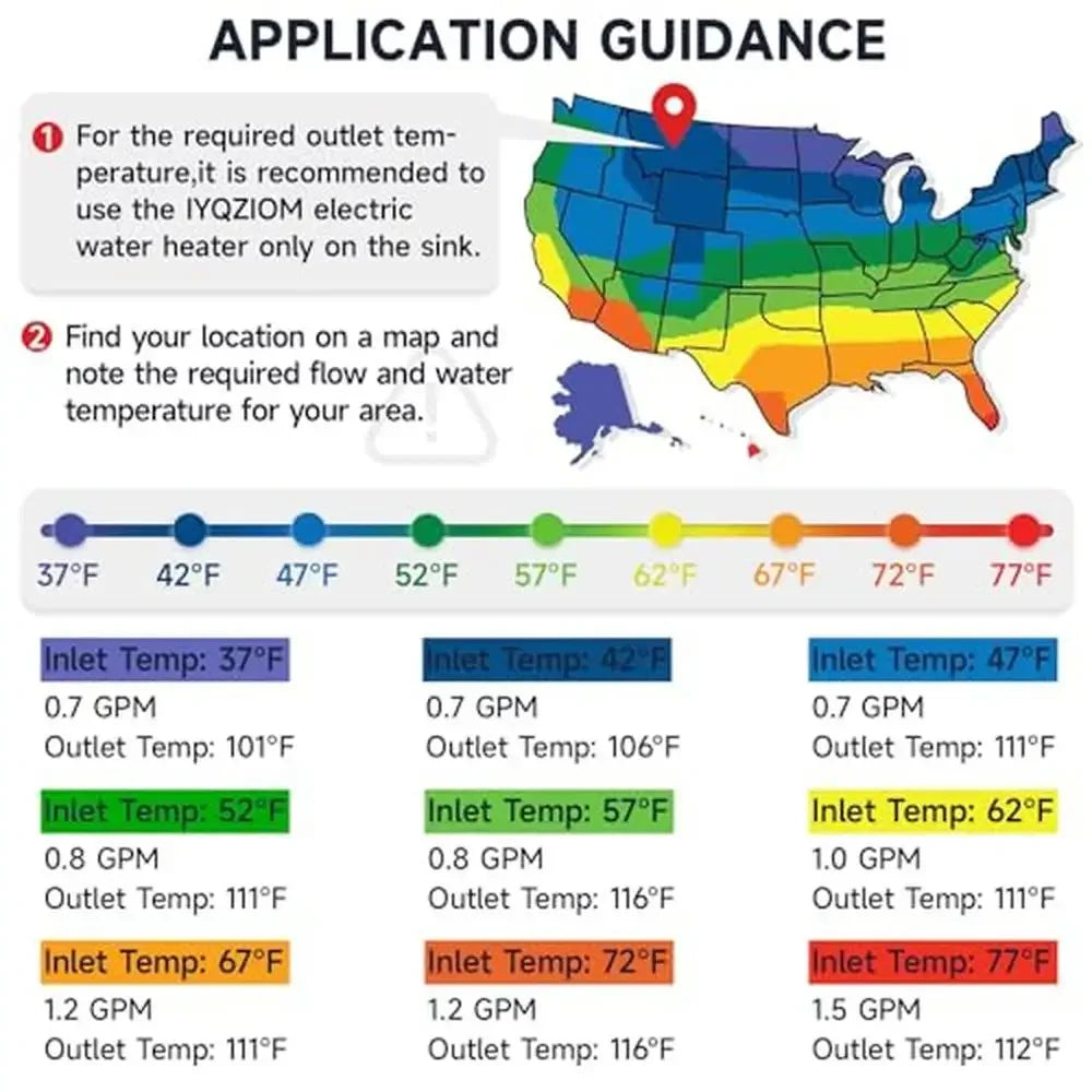 Applied with 6. 5kW heating system, the instant water heater electric supplies instant, sufficient and endless hot water of 110℉ or higher temp in seconds, no waiting for preheating nor terrible temp fluctuation,this electric water heater is very simple,Small size,lightweight, and easy to install perfect companion for sink faucet.
