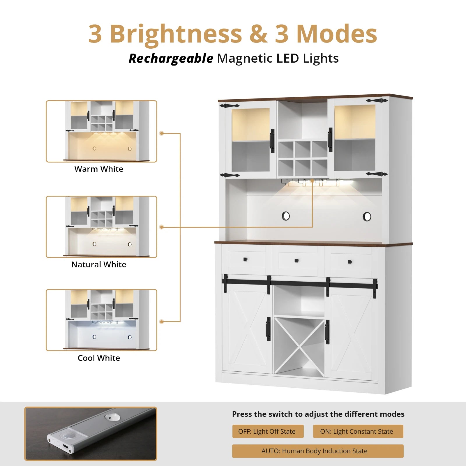 【Multifunctional Farmhouse Cabinet】The bar cabinet creates an elegant farmhouse atmosphere, and you can flexibly use it as a wine cabinet, kitchen food cabinet, coffee bar, microwave rack, kitchen cabinet, sideboard cabinet, storage cabinet.
