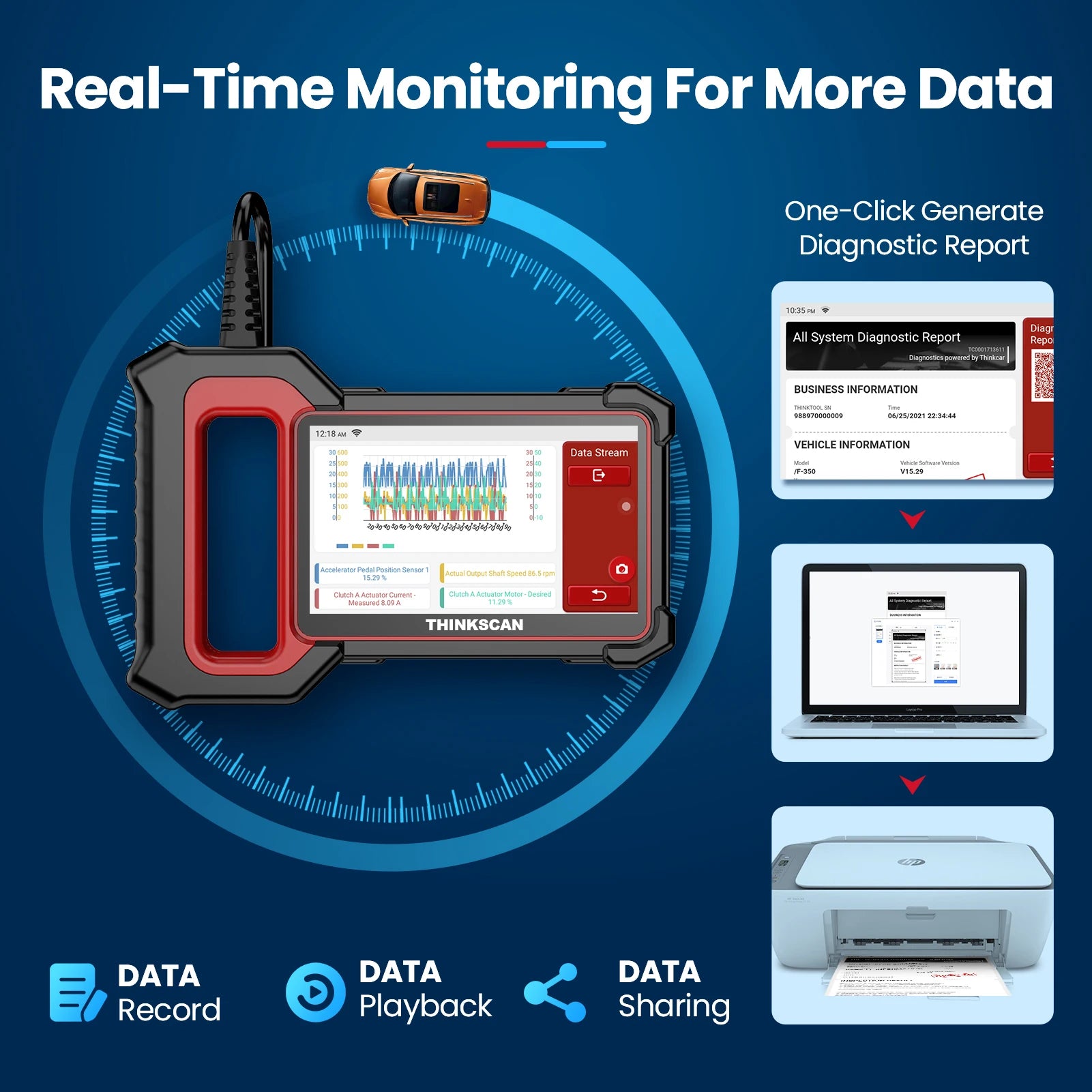 [More Help] Auto-VIN for quick and accurate identification. Print diagnostic report which can read hidden problem make early warning. One to one diagnostic feedback from Thinkcar Tech.