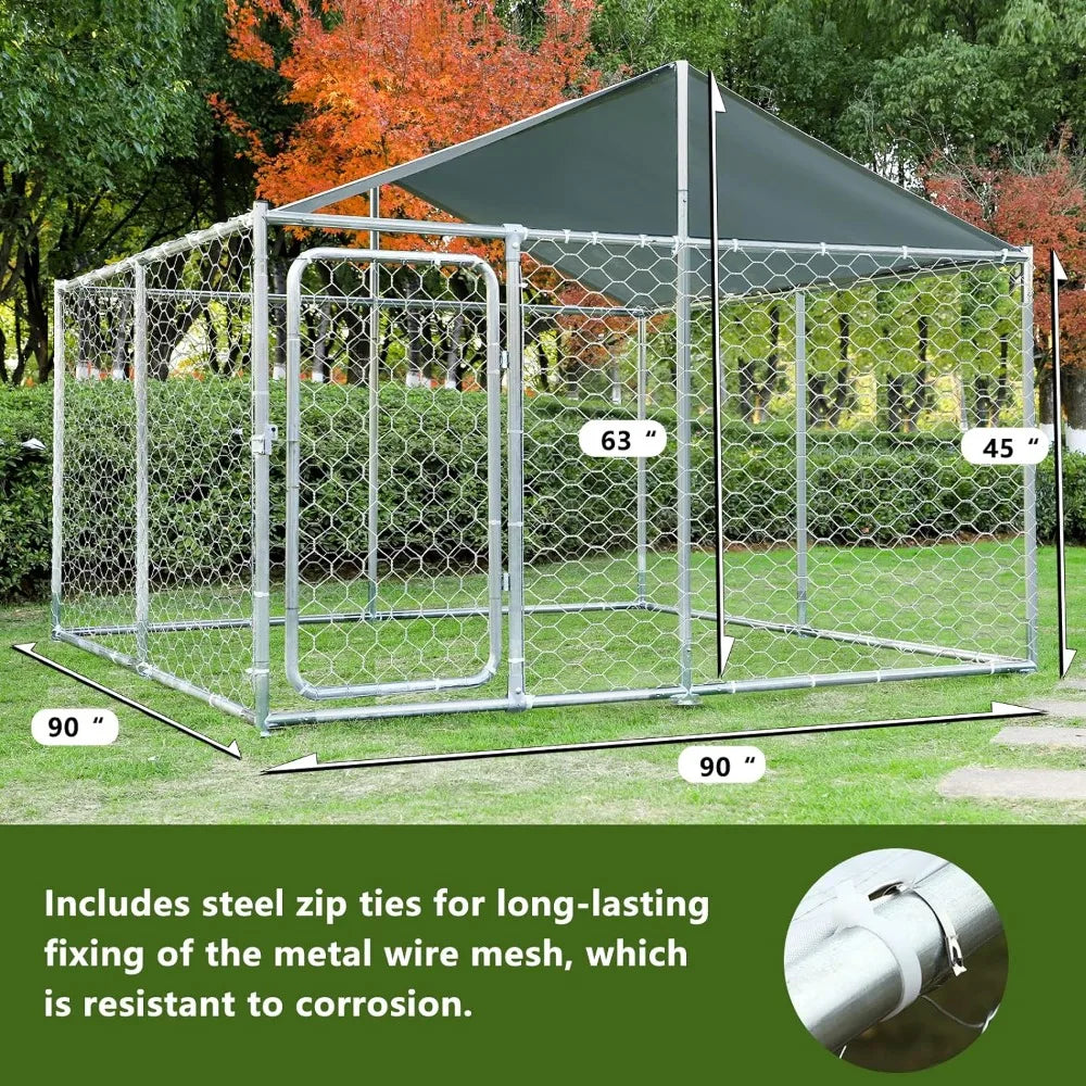 - 【Spacious Interior Space】 The dimensions are 90" X 90" X 45". This outdoor large dog kennel provides your pet dogs with large and secure enough space to play and live in the field and backyard, and can accommodate multiple dogs at once. Suitable for small and medium-sized dogs. Also, it is a perfect choice for pets to train/rest/play outdoors.