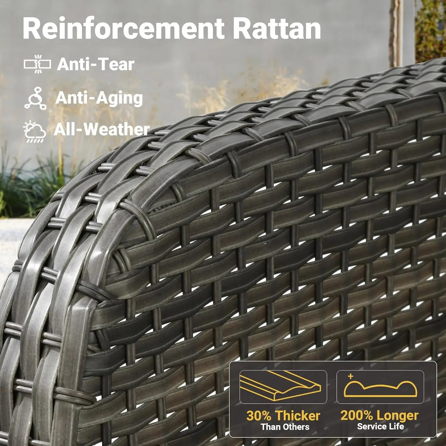 3. All-weather Wicker Rattan: Our outdoor seating have very durable wicker rattan for all-weather use and a natural texture with good coloring. The high-quality patio chairs made of powder coated steel frame ensures good strength and stability
