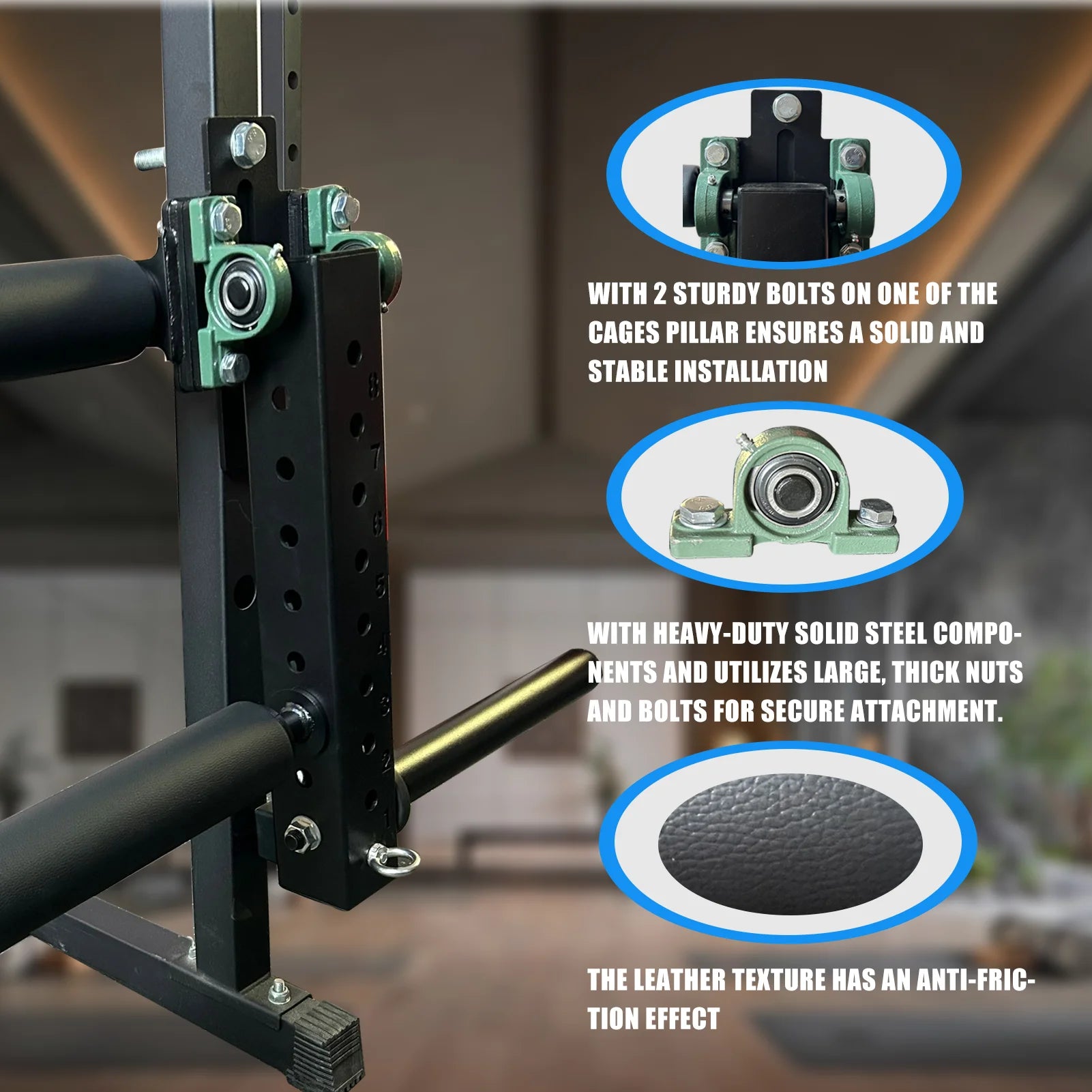 Easy Installation: With 2 sturdy bolts on one of the cages pillar ensures a solid and stable installation. Moreover the leg press workout equipment can be adjusted to match the height of your seat or bench. Additionally, the leg extension attachment can be placed on the left or right side of your cage.