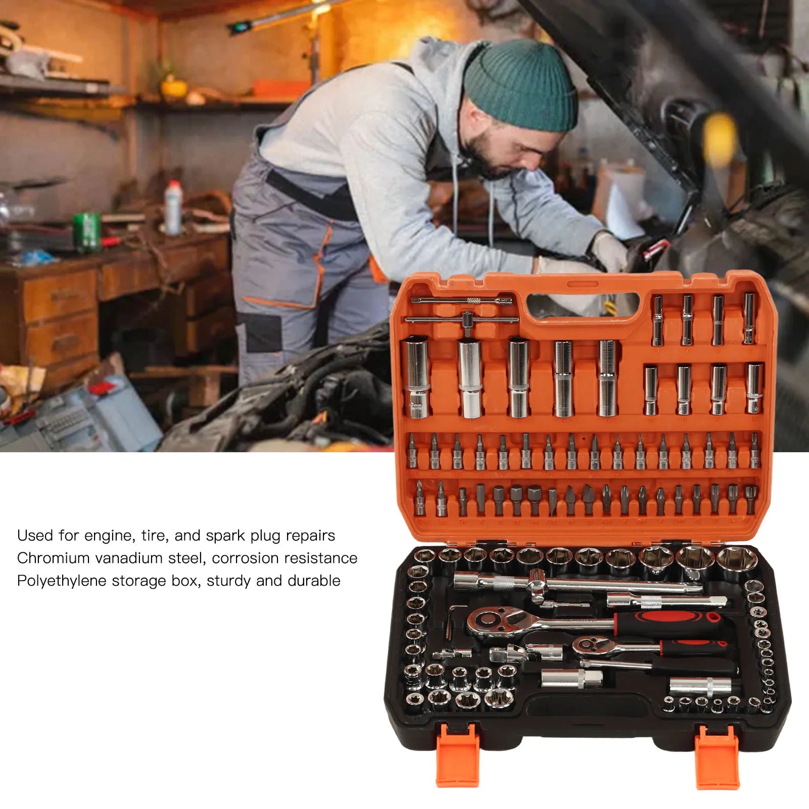 108 Pieces Mechanical Repair Tools Impact Socket Assortment Kit Ratchet and Hex Wrenches Screwdriver Bits