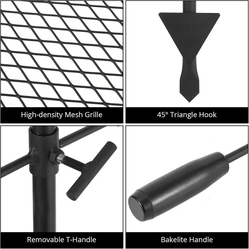 Durable Heavy-Duty Construction: Crafted from robust steel with a protective surface coating, this fire pit grate is not only durable but also resistant to rust and capable of withstanding high temperatures. A reliable choice for long-lasting outdoor cooking experiences.