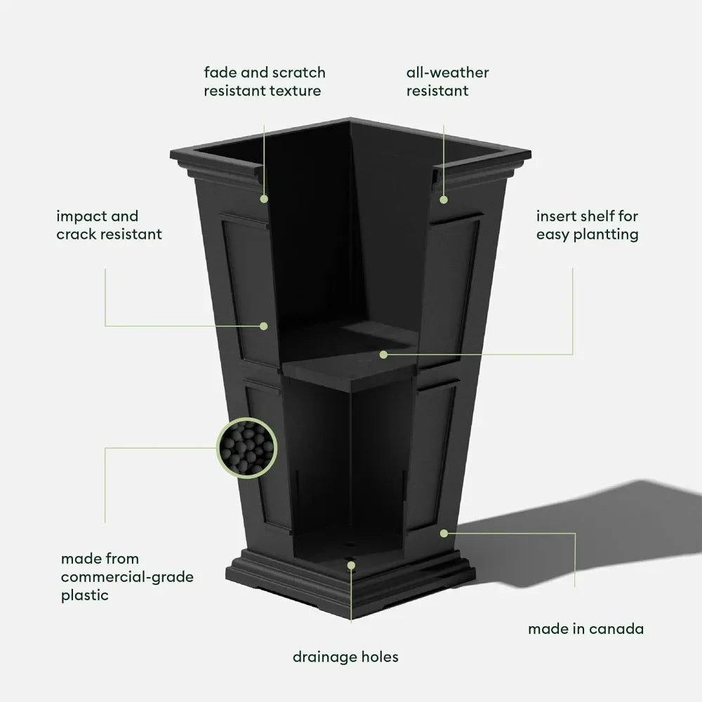 Tall Plastic Planter - Large Outdoor Planter for Front Porch | Weather Use -Crack Resistant All