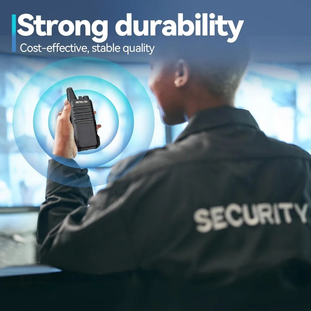 FRS license free two way radio; extremely compact and slim for business use; featured with 16 channel; work right out of box; you don't need a license for RT22 walkie talkie