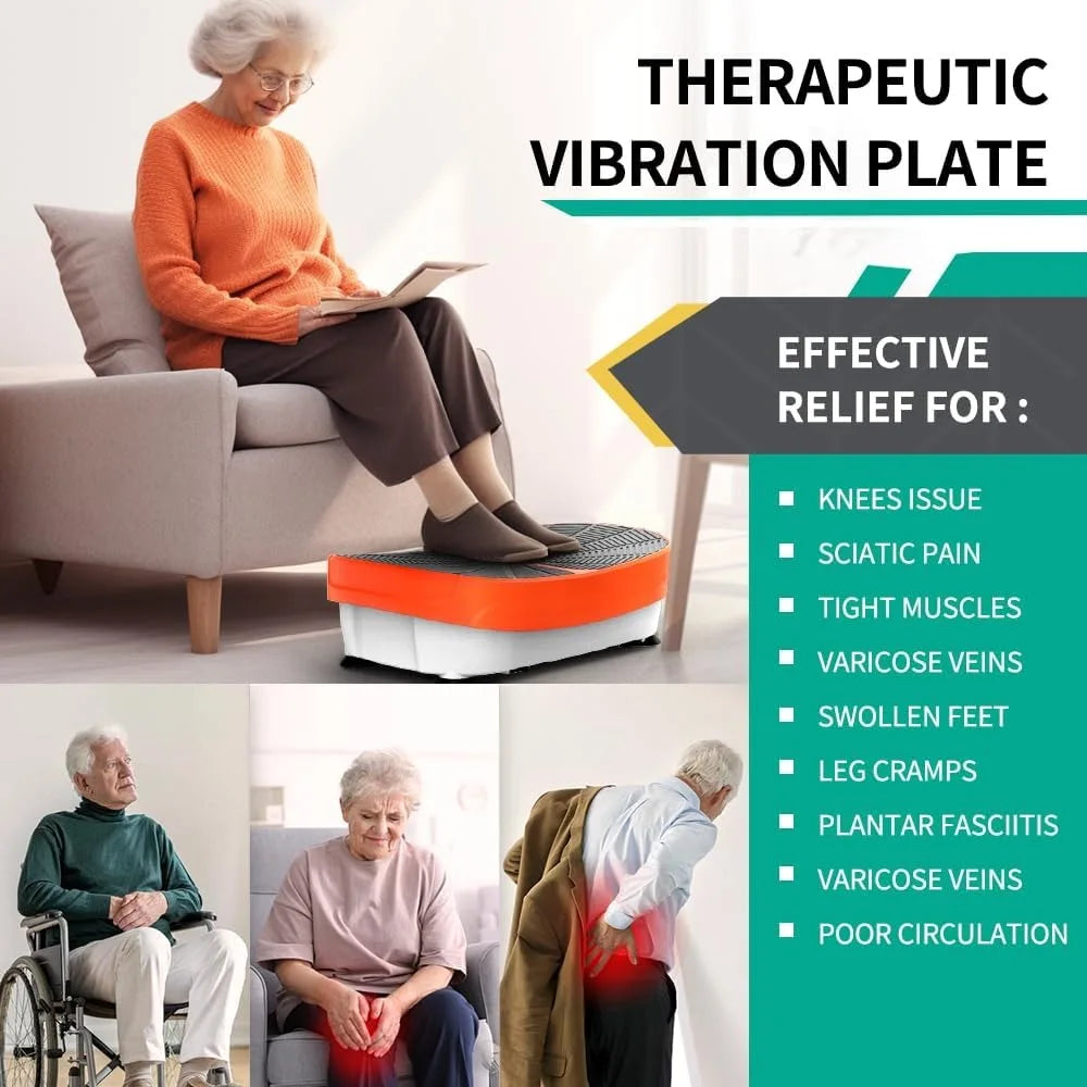 - BUILD HEALTHY BODY: This full-body vibration machine is effective for relieving knees issue,sciatic pain, tight muscles,varicose veins,swollen feet, leg cramps, plantar fasciitis, varicose veins and improve poor circulation. Perfect for the elderly.
