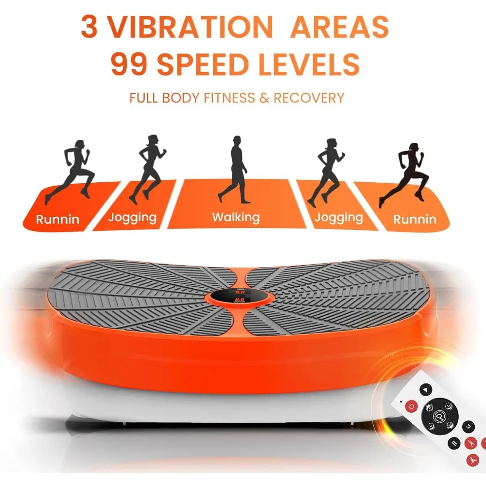 - 99 ADJUSTABLE VIBRATION SPEEDS: Vibration plate speed range from 1 to 99, with 99 having the maximum intensity to suit different needs, remote easily controls the speed at the click of a button, and 15 minutes on this vibration platform equals 1 hour of jogging