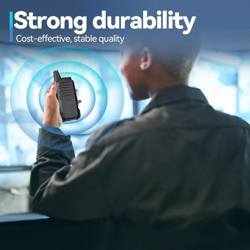 Fits in your palm; handheld radios walkie talkie; easy to carry around and simple to operate; save space; antenna length 7 inches; 3.78*2.17*0.87 in; weight 108g