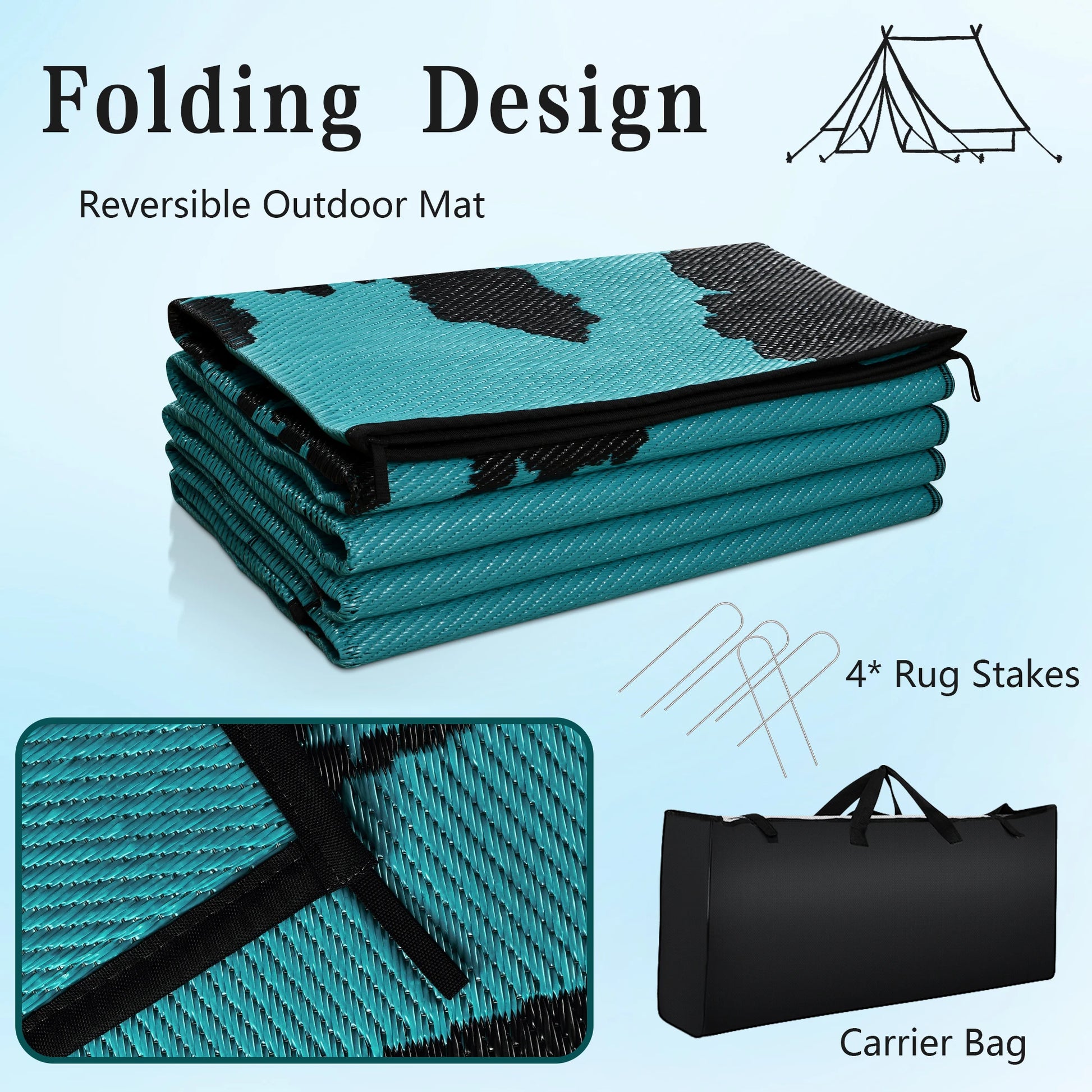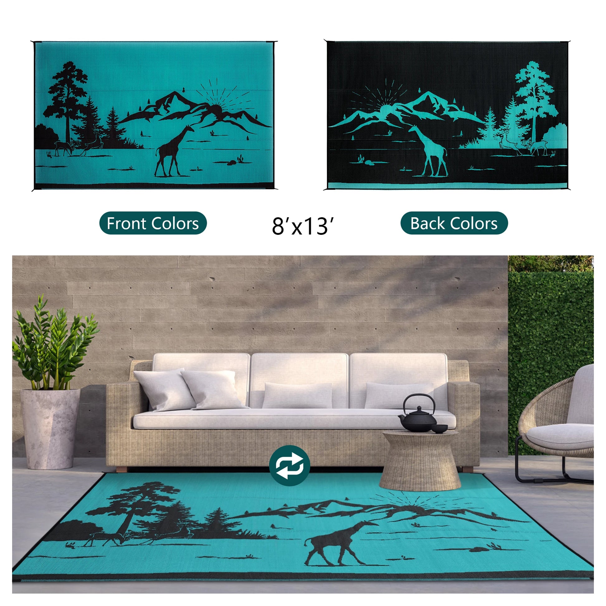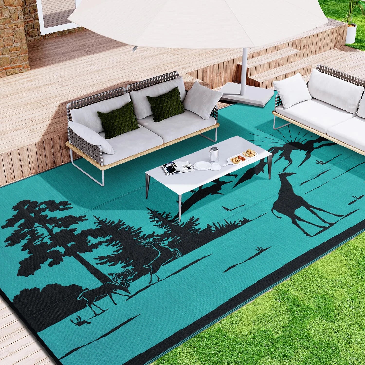 EASY CLEANING & PORTABLE: For a quick clean simply sweep away dirt with water and airing it dry. Reversible outdoor rugs can be folded into compact size for easy storage, it comes with a carrying bag for added convenience. Suitable for an afternoon outing or an RV road trip.