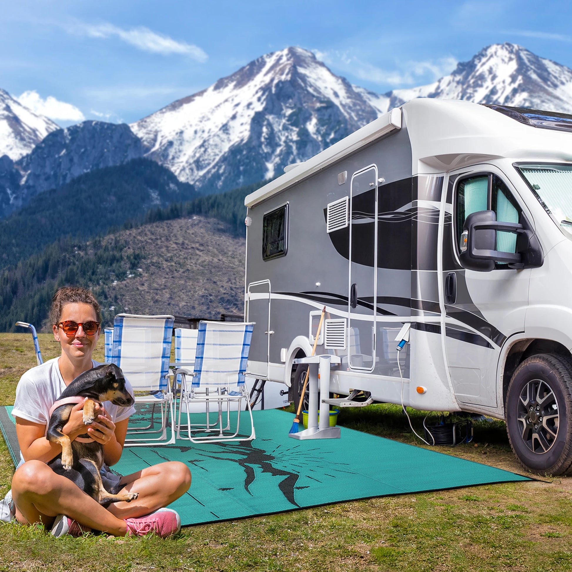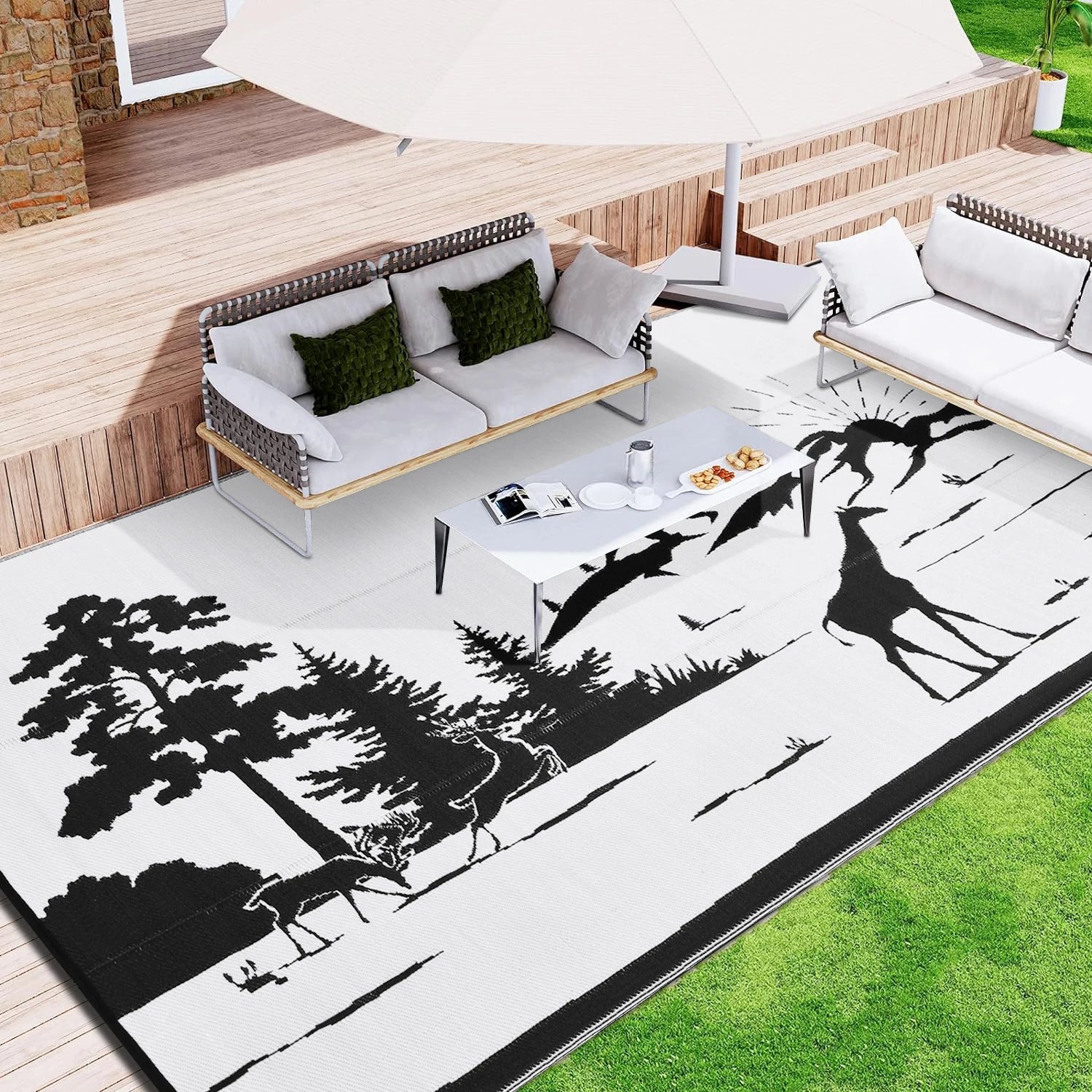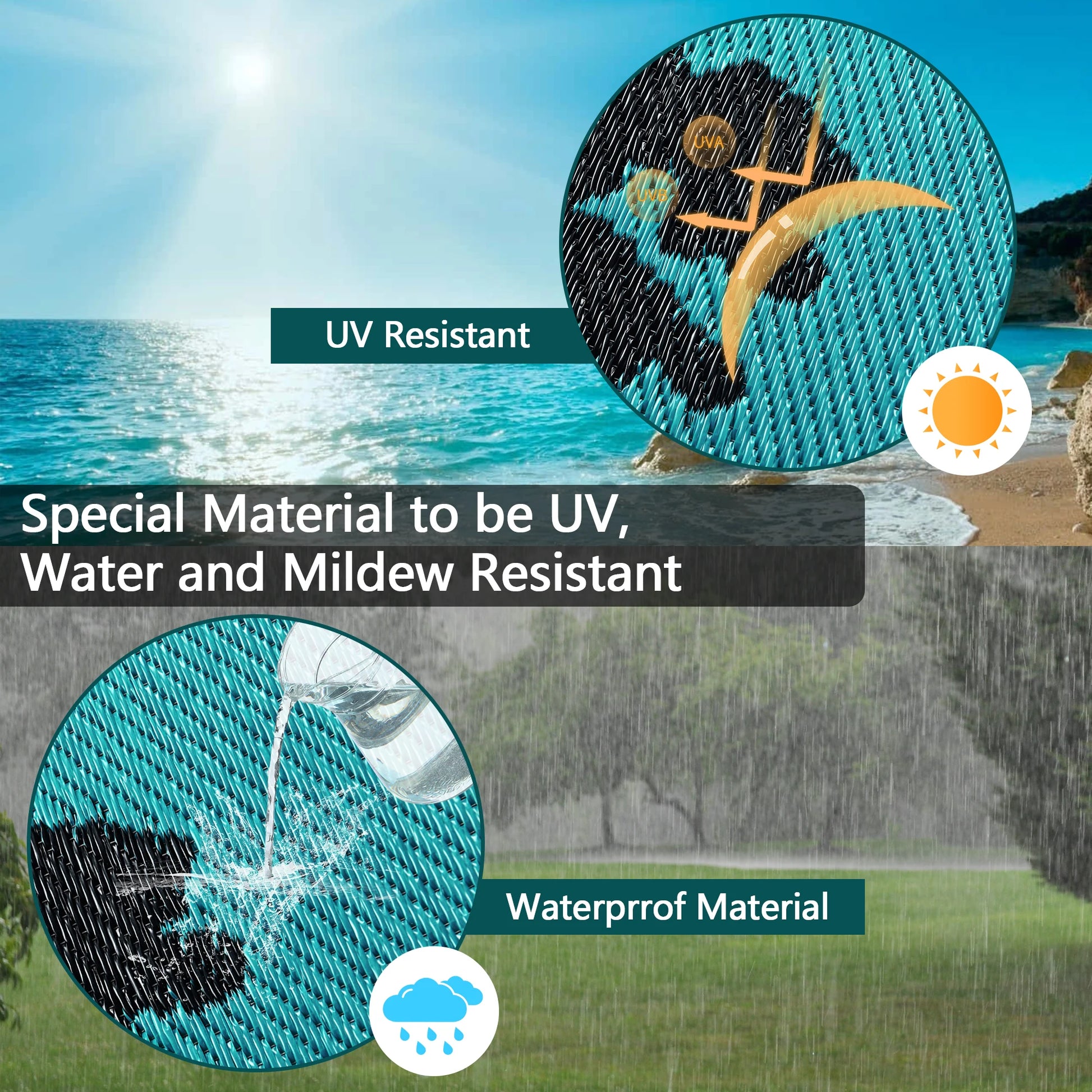 EASY CLEANING & PORTABLE: For a quick clean simply sweep away dirt with water and airing it dry. Reversible outdoor rugs can be folded into compact size for easy storage, it comes with a carrying bag for added convenience. Suitable for an afternoon outing or an RV road trip.
