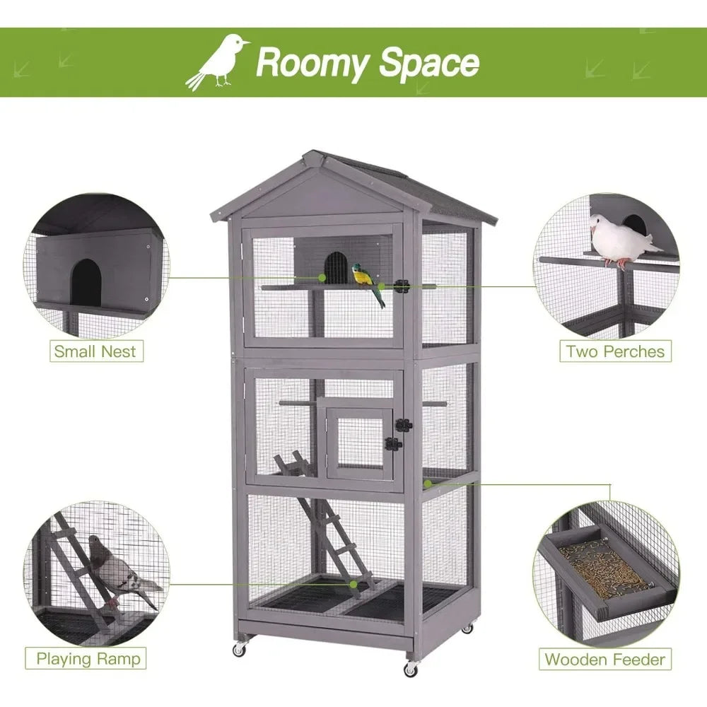 MOVE FREELY: Bird house on four Sturdy Stainless Steel Wheels so that you can move the aviary cage indoor and outdoor easily. Asphalt Roof does well in water proof